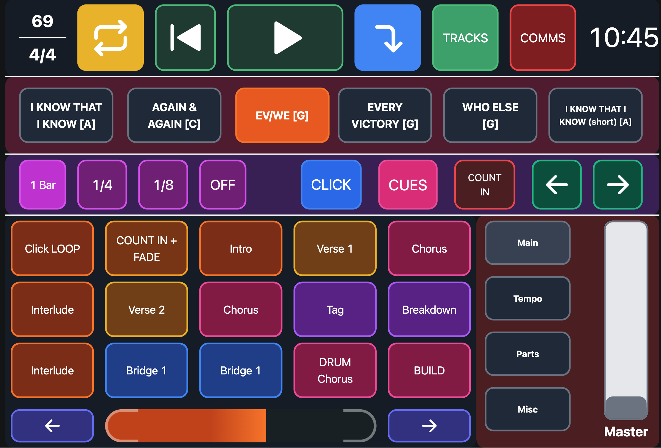 Use case is that I’ve got 2 songs in the same key that I would like to be able to flow between, potentially going back into a section in song 1 from a section in song 2, but to be able to do it on the fly.