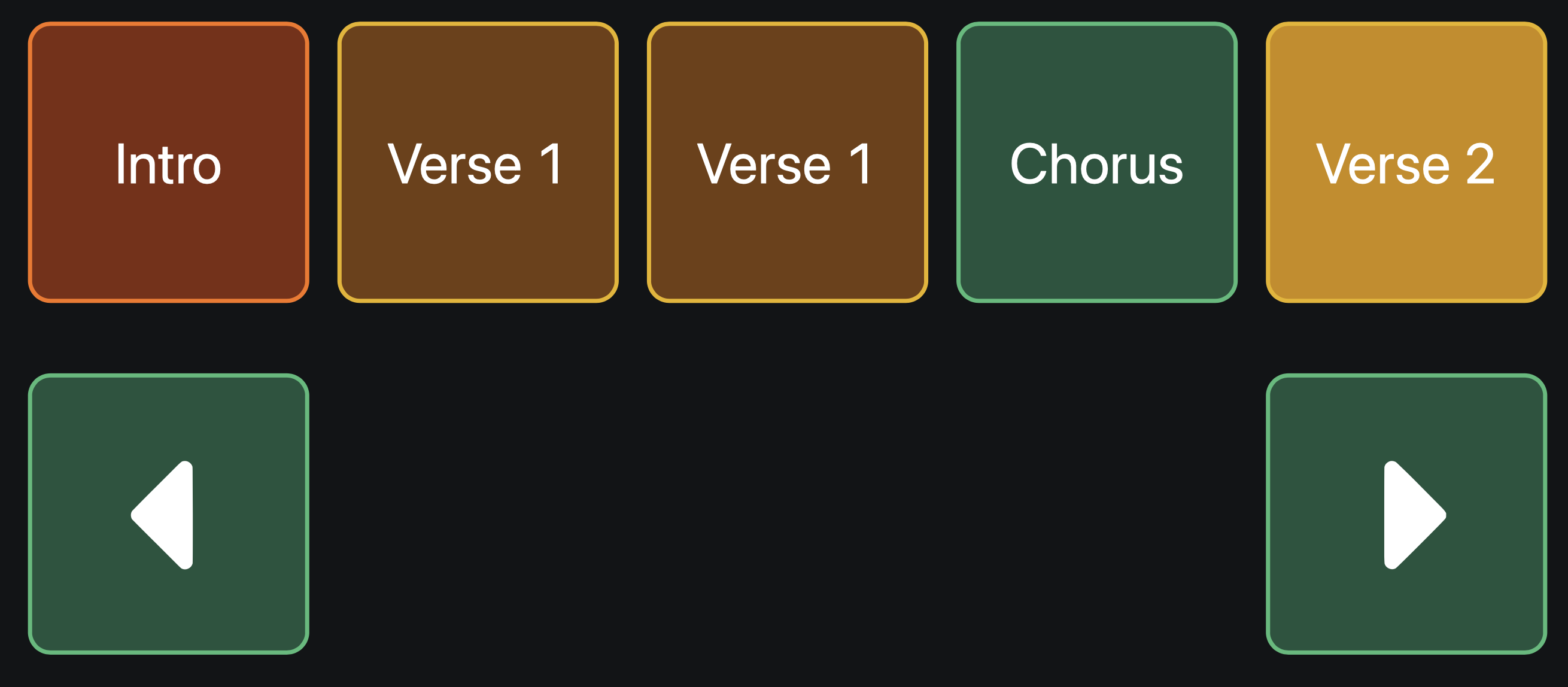 Is there a way that I could set the buttons to take the respective section colours in a muted shade while not currently playing and then a brighter shade when that section is currently playing? I’ve got it working with whatever colour I specify, but haven’t been able to figure out a way to grab the section colours with different shades.