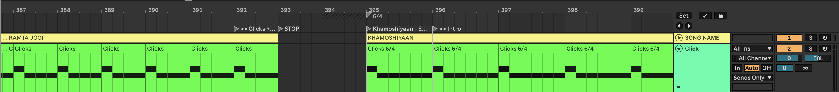 • Are your click tracks rendered as WAV/AIFF files, or are you generating the click inside Live?