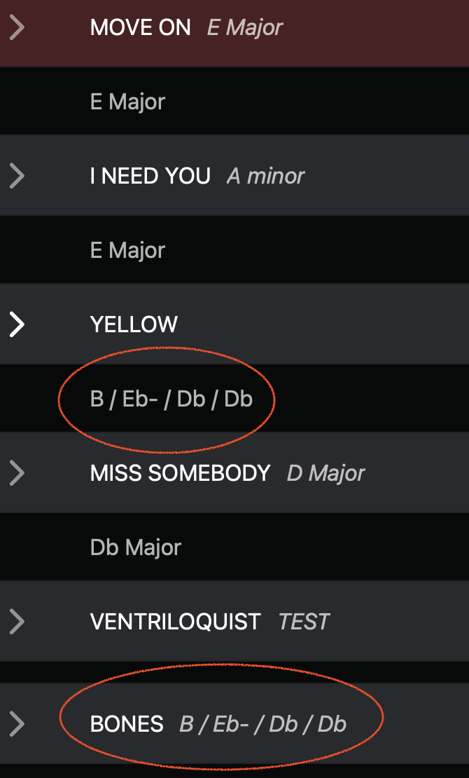 And what you’re seeing under the song YELLOW seems to be the stop description for that song. Could you go into Setlist Edit Mode and confirm whether that’s the case?