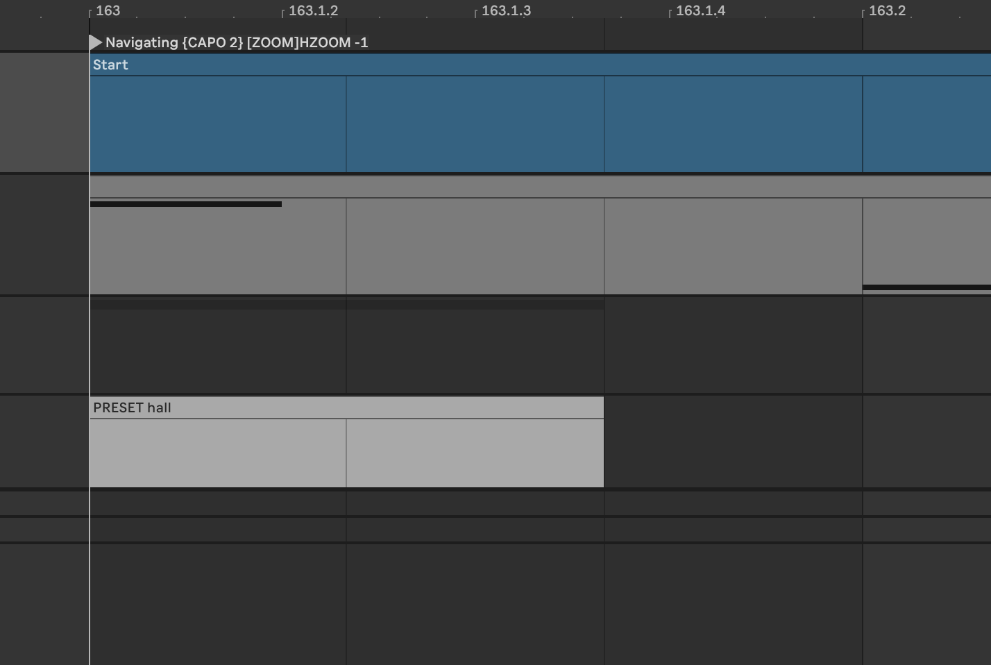 On the other hand, if you’re using a Sections track and place a numbered locator at the start of any given section using ClyphX-style syntax (again, e.g. 2 [] bpm 120), AbleSet will ignore that locator entirely, and even every section after it won’t be picked up.