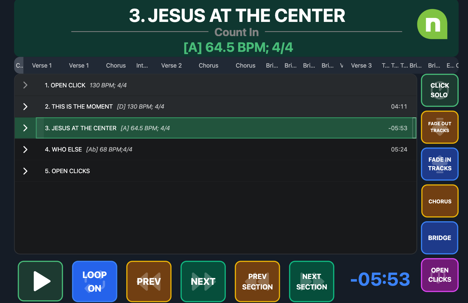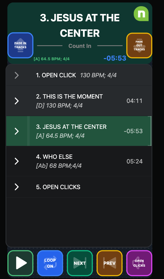- Ability to fade tracks in and out if the team gets off so they can move to open click