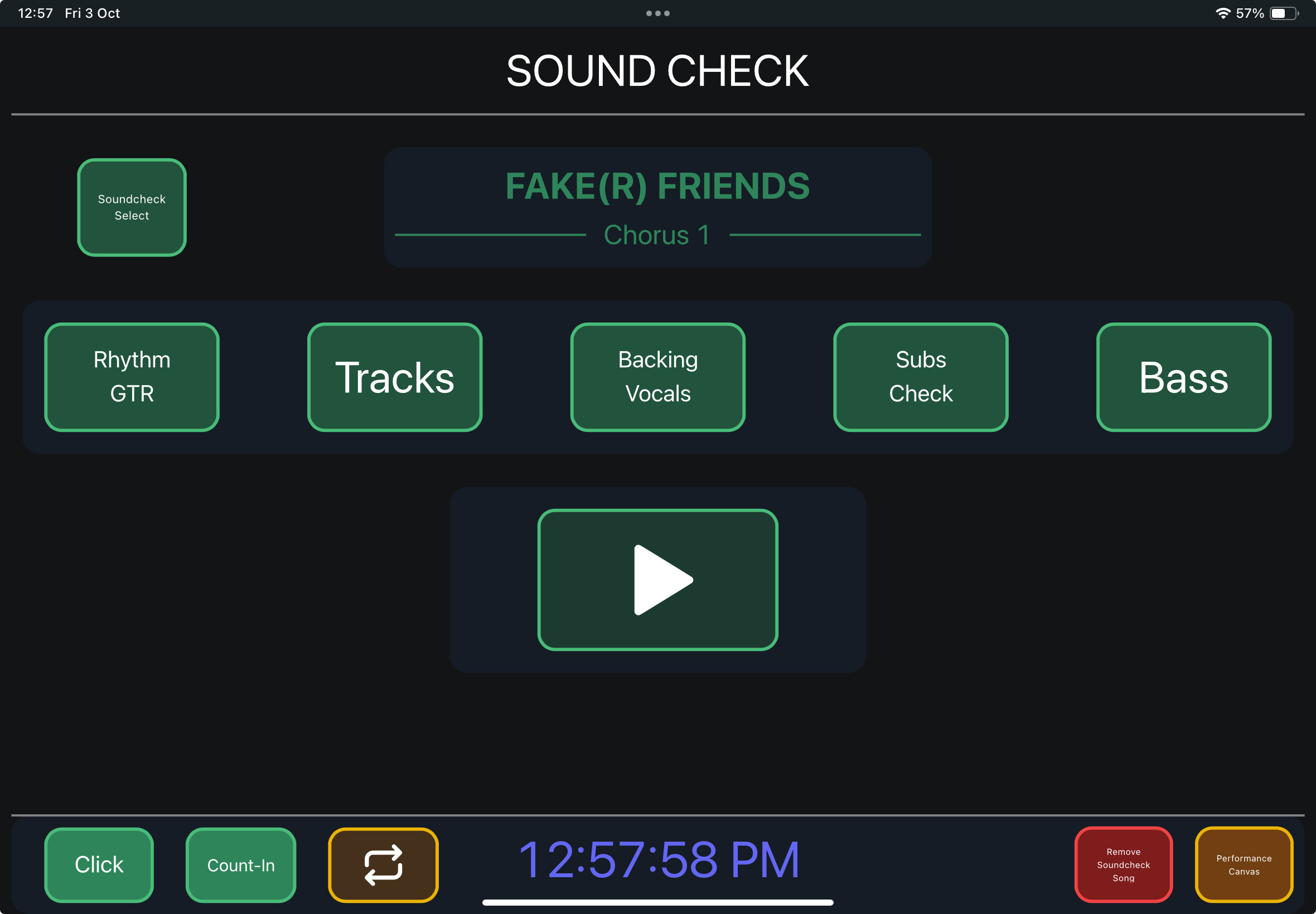 I have 2 pages. 1 for sound checking so I can easily loop the tracks needed sounded checking within seconds and 1 for performance where I can quickly access click, count-in and sections while showing essential info for me.