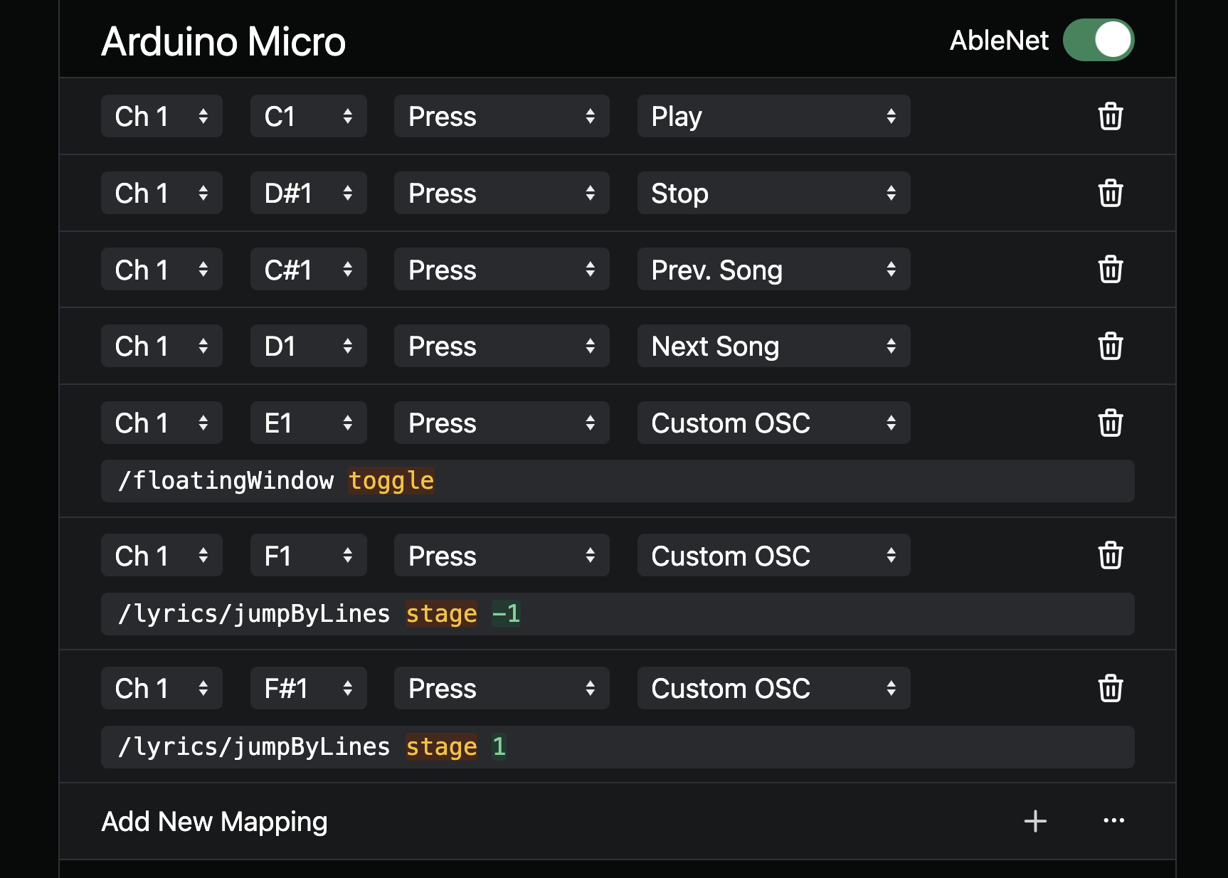 AbleSet → Settings → MIDI Mappings