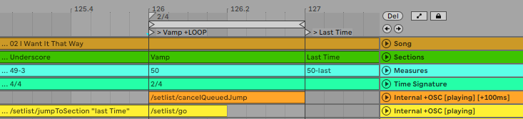 Currently figuring our the best way to programme a safety bar - that’s at the end of a song which segues into the next song - where I also need to trigger the last time so that a specific LTC stem can be played (as opposed to just escaping the loop and continuing).
