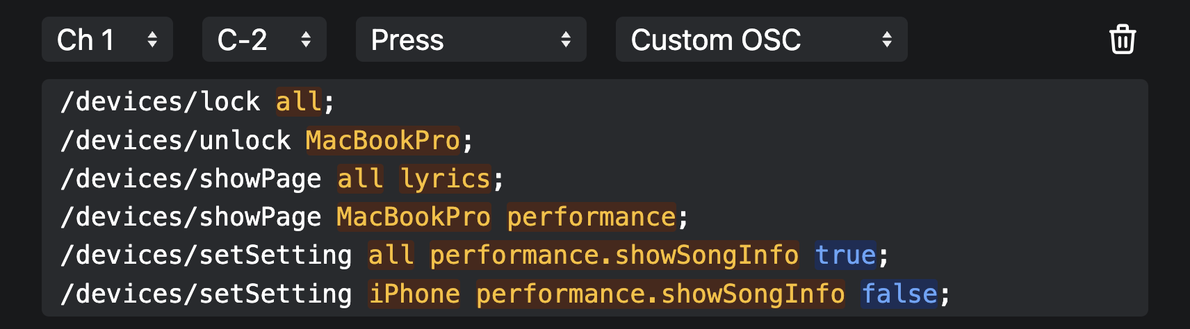 • You can also use an OSC track at the start of your project (or at the start of each song) to act as a configuration / bootstrap step.