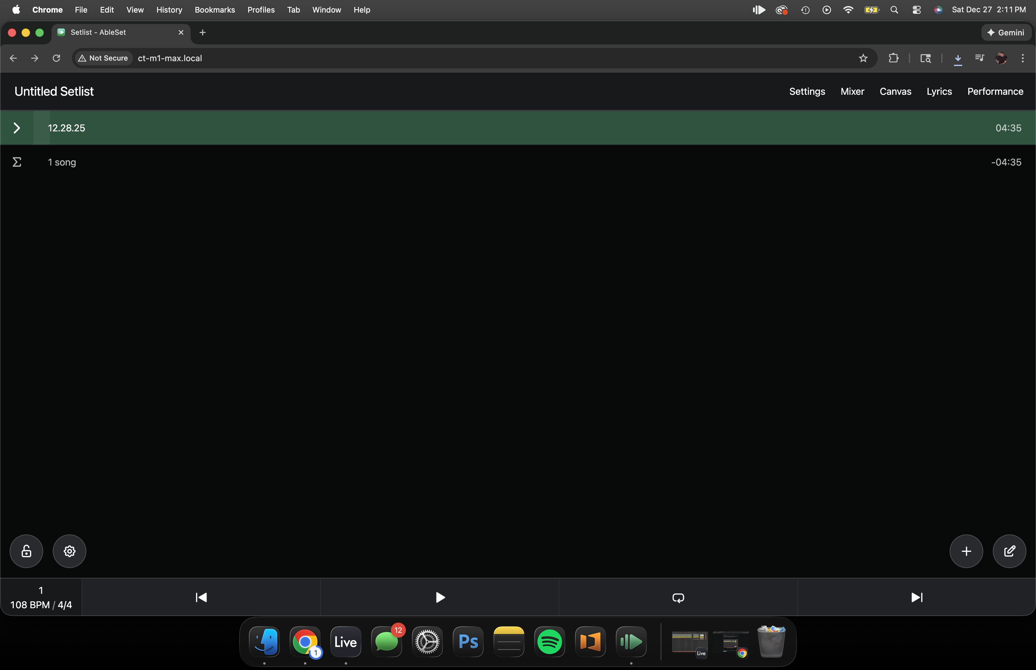 I’m not able to use any of my Ableton projects. I have to create a setlist inside of Ableset but the problem I have there is the entire project changes in Ableton and there are no seamless transitions because Ableton has to load the new project and then start.