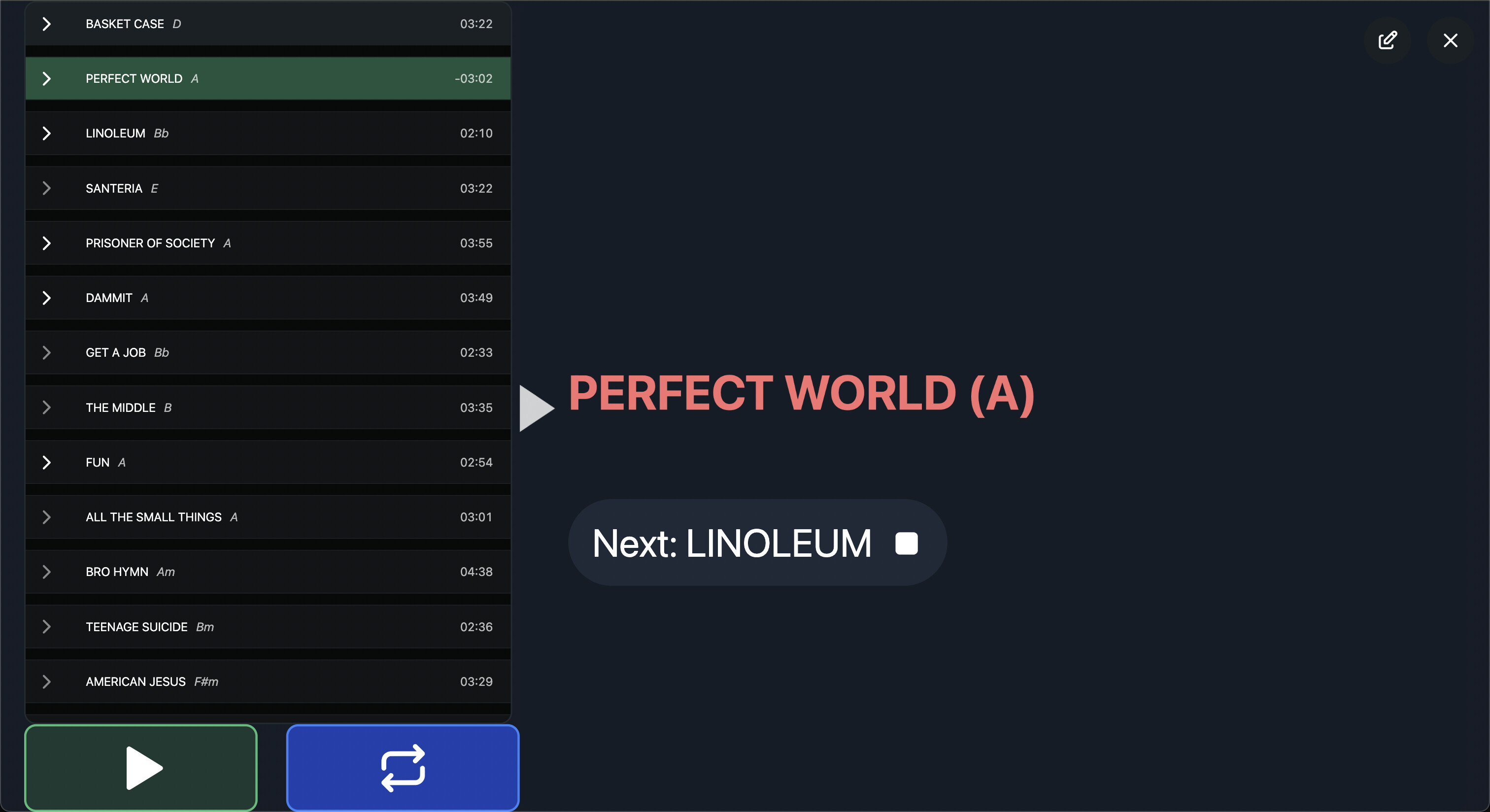 Is there a way for it to always show the current song… In another band we have an actual setlist we follow, ( this is lyrics view im talking now, i assume its the same with canvas ) but once it hits a song below whats currently visible there’s no way to see the song title unless i reach down and swipe the screen down… I know… Not a huge deal, but would be nice to have current song say at top of setlist so always can what songs are left in the set.