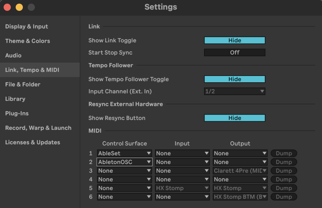 After this you might have to restart Live. Then open Live → Settings → Link/Tempo/MIDI and select AbletonOSC as a Control Surface ![]()