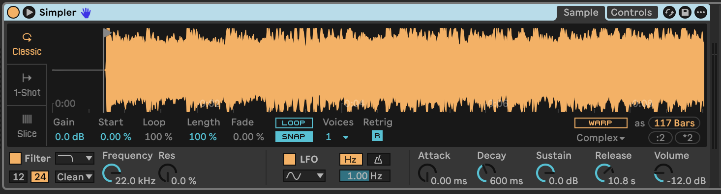Then, add a Simpler device on that MIDI track and drag your walk-on song into it: